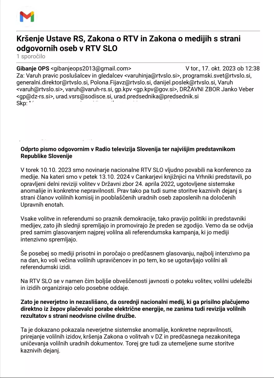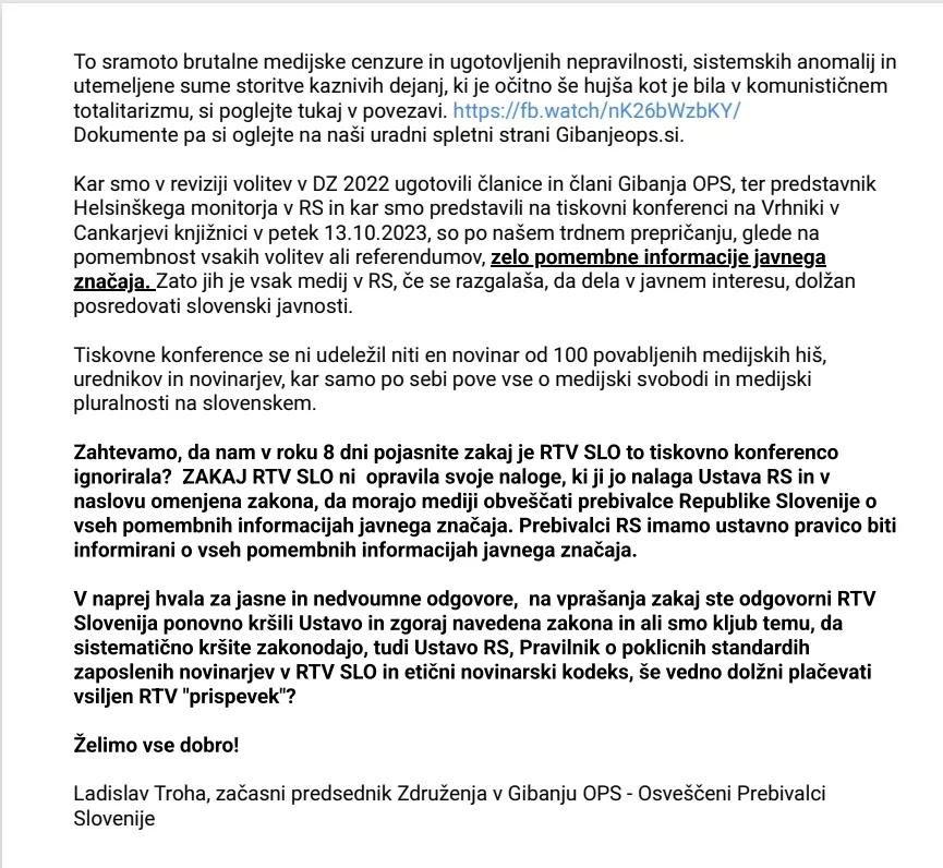 Odprto pismo odgovornim v RTV SLO in najvišjim predstavnikom Republike Slovenije