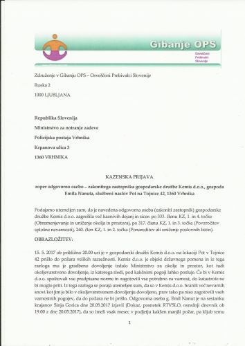 ODGOVORNOST DIREKTORJA KEMISA JE OPISANA V KAZENSKI PRIJAVI, KI SMO JO 24. maja 2017 POSLALI NA MILICO.