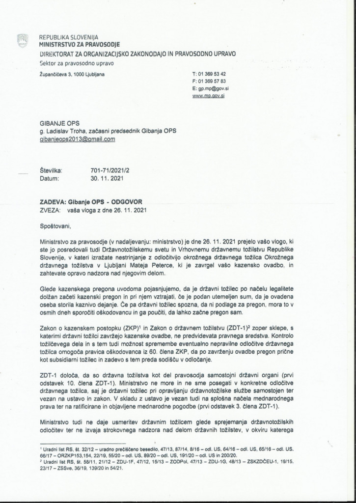 Vrhovno sodišče ni razveljavilo sodbe – resnica, ki jo je treba povedati jasnoVčeraj 1.04.2026 se v javnosti pojavljajo interpretacije preko MS ugrabljenih medijev, ki ustvarjajo vtis, da je v našem primeru prišlo do pomembnega preobrata.Nekateri mediji, med njimi tudi RTV Slovenija, poročajo, da naj bi bilo odločeno, da je bila ustavitev postopka napačna oziroma celo, da naj bi sodišče prve stopnje ravnalo protizakonito.Takšna predstavitev je zavajajoča, ker ne pove bistvenega.Vrhovno sodišče sodbe ni razveljavilo. Postopek ostaja ustavljen. Nobenega novega sojenja ni in nobene kazni ni bilo izrečene. To je pravno dejstvo, ki se ni spremenilo.Kaj se je v resnici zgodiloVrhovno sodišče je odločalo o zahtevi za varstvo zakonitosti. Gre za izredno pravno sredstvo, pri katerem sodišče presoja pravilnost uporabe prava, ne pa dejanskega stanja na način, kot se to počne v rednem postopku.V konkretnem primeru je sodišče tej zahtevi ugodilo. Vendar pa pri tem ni poseglo v pravnomočno odločitev, s katero je bil postopek ustavljen. Ta odločitev ostaja v veljavi.To pomeni, da se izid za konkretni primer ni spremenil. Postopek je še vedno ustavljen in s tem tudi zaključen. Ni pravne podlage za novo sojenje, prav tako ni nobene sankcije.Sodišče je ob tem podalo tudi svoje pravno stališče glede uporabe instituta skrajne sile. Ocenilo je, da je bila ta pravna podlaga v konkretnem primeru uporabljena napačno. Toda to stališče nima retroaktivnega učinka. Ne more spremeniti že pravnomočno zaključenega postopka.Gre torej za tako imenovano deklaratorno odločitev – za razlago prava, ki velja za prihodnje primere, ne pa za poseg v že končanega.Ali je sodišče prve stopnje ravnalo protizakonito?Posebej pomembno je razjasniti trditev, ki se pojavlja v medijih, da naj bi sodišče prve stopnje ravnalo protizakonito.To ne drži v smislu, kot se to predstavlja javnosti.Vrhovno sodišče ni ugotovilo, da bi sodišče prve stopnje kršilo zakon na način, ki bi pomenil nezakonito ali nedopustno ravnanje. Ugotovilo je nekaj drugega: da je bila pravna presoja – konkretno uporaba instituta skrajne sile – po njegovi oceni napačna.To pa je bistvena razlika.V sodnih postopkih je povsem običajno, da višje sodišče zavzame drugačno pravno stališče kot nižje. To še ne pomeni, da je nižje sodišče ravnalo protizakonito, temveč pomeni, da je pravo razlagalo drugače.Izraz “protizakonito”, kot se uporablja v javnem prostoru, ustvarja vtis hujše kršitve, celo nepravilnega ali nedopustnega ravnanja. V konkretnem primeru pa gre za strokovno pravno razhajanje, ne za ugotovitev nezakonitosti.Ključno dejstvo ostaja: Vrhovno sodišče zaradi te svoje presoje ni razveljavilo odločitve in ni spremenilo izida postopka.Najbolj pomembno pa je, da Vrhovno sodišče ni zanikalo dejstva, da je RTV SLO prikrivala življenjsko pomembne informacije za zdravje ljudi. Te življenjsko pomembne informacije, ki smo jih želeli preko RTV SLO izhajajo iz tega zločinskega dokunenta, ki smo ga pred tem preden smo "vdrli" v prostore ljudske RTV SLO, uradno pridobili skladno z Zakonom o dostopu do informacij javnega značaja od Ministrtva za zdravje. O tem dokumenti in vsebini, ki negira laž "učinkovito in varno" seveda RTV SLO ni nikoli poročala. Objavljamo tudi povezave na sporno pogodbo Pfizer - EU in da EMA ni nikoli odobrila cepljenja celotne neselektivne populacije.https://gibanjeops.si/post/604011/uraden-vladni-dokument-ki-razkriva-laz-vseh-vpletenih-da-so-cepiva-zoper-k-19-ucinkovita-in-varnahttps://gibanjeops.si/post/813347/ema-ni-nikoli-dala-odobritve-za-cepljenje-celotne-slovenske-populacijehttps://gibanjeops.si/post/650468/razkrita-obcutljiva-zlocinska-pogodba-pfizer-komisija-eu-za-vse-drzave-clanice-euSte o teh dejstvih kdaj slišali kaj iz kakšne oddaje RTV SLO?Zakaj prihaja do napačnih interpretacijProblem nastane, ko se iz odločitve izlušči le en del – pravno stališče – in se ga predstavi kot končni rezultat.Naslovi, ki poudarjajo, da je bila ustavitev postopka napačna ali celo protizakonita, pri bralcu ustvarijo vtis, da je bila prejšnja odločitev odpravljena ali da se postopek vrača na začetek. To ne drži.Resnica je precej bolj preprosta: sodišče je povedalo, kako razume pravo, ni pa poseglo v že zaključeni primer.Širši kontekst in vprašanja, ki ostajajo odprtaVzporedno s pravnim dogajanjem v javnost prihajajo tudi informacije in posnetki zaslišanj, ki odpirajo vprašanja o ravnanju velikih farmacevtskih družb v času razvoja cepiv proti covidu-19.Med drugim kroži video zaslišanje predstavnika družbe Pfizer, v katerem so podane izjave o poteku testiranj in časovnih pritiskih v obdobju razvoja cepiva. Slišano je grozljivo slišati in gre zdaj za odprto Pandorino skrinjico.Ali bo morda zdaj RTV SLO o teh pričevanjih visokega uslužbenca farmacevtske družbe Pfizer poročala, odprla javno razpravo? Razložila narodu kaj smo pripadniki Gibanja OPS skušali preprečiti? Poglejte ta video, ki se je prav včeraj ob izdaji sodbe Vrhovnega sodišča pojavil v javnosti.(Video in prevod, ga. Tjaša Vuzem)Takšni posnetki odpirajo legitimna vprašanja o transparentnosti, postopkih preverjanja in odgovornosti v času "izrednih razmer." Prav ta vprašanja so bila tudi v središču širših družbenih razprav v zadnjih letih.ZaključekČe se vrnemo k bistvu: v našem primeru ni prišlo do pravnega preobrata.Vrhovno sodišče sodbe ni razveljavilo. Postopek ostaja ustavljen. Izid je enak kot prej.Trditve o “protizakonitem ravnanju” so pretirane in temeljijo na napačni interpretaciji pravnega pomena odločitve.Zato je še toliko bolj pomembno, da se držimo dejstev in jih jasno povemo.Le tako lahko preprečimo, da bi napačni vtisi nadomestili pravno realnost.Zahteva za popravek pri RTV SLO:Spoštovani,na podlagi 40. člena Ustave Republike Slovenije, ki zagotavlja pravico do popravka objavljene informacije, ter skladno z Zakonom o medijih, od