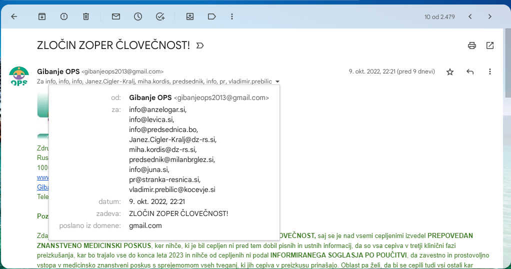 Vrhovno sodišče ni razveljavilo sodbe – resnica, ki jo je treba povedati jasnoVčeraj 1.04.2026 se v javnosti pojavljajo interpretacije preko MS ugrabljenih medijev, ki ustvarjajo vtis, da je v našem primeru prišlo do pomembnega preobrata.Nekateri mediji, med njimi tudi RTV Slovenija, poročajo, da naj bi bilo odločeno, da je bila ustavitev postopka napačna oziroma celo, da naj bi sodišče prve stopnje ravnalo protizakonito.Takšna predstavitev je zavajajoča, ker ne pove bistvenega.Vrhovno sodišče sodbe ni razveljavilo. Postopek ostaja ustavljen. Nobenega novega sojenja ni in nobene kazni ni bilo izrečene. To je pravno dejstvo, ki se ni spremenilo.Kaj se je v resnici zgodiloVrhovno sodišče je odločalo o zahtevi za varstvo zakonitosti. Gre za izredno pravno sredstvo, pri katerem sodišče presoja pravilnost uporabe prava, ne pa dejanskega stanja na način, kot se to počne v rednem postopku.V konkretnem primeru je sodišče tej zahtevi ugodilo. Vendar pa pri tem ni poseglo v pravnomočno odločitev, s katero je bil postopek ustavljen. Ta odločitev ostaja v veljavi.To pomeni, da se izid za konkretni primer ni spremenil. Postopek je še vedno ustavljen in s tem tudi zaključen. Ni pravne podlage za novo sojenje, prav tako ni nobene sankcije.Sodišče je ob tem podalo tudi svoje pravno stališče glede uporabe instituta skrajne sile. Ocenilo je, da je bila ta pravna podlaga v konkretnem primeru uporabljena napačno. Toda to stališče nima retroaktivnega učinka. Ne more spremeniti že pravnomočno zaključenega postopka.Gre torej za tako imenovano deklaratorno odločitev – za razlago prava, ki velja za prihodnje primere, ne pa za poseg v že končanega.Ali je sodišče prve stopnje ravnalo protizakonito?Posebej pomembno je razjasniti trditev, ki se pojavlja v medijih, da naj bi sodišče prve stopnje ravnalo protizakonito.To ne drži v smislu, kot se to predstavlja javnosti.Vrhovno sodišče ni ugotovilo, da bi sodišče prve stopnje kršilo zakon na način, ki bi pomenil nezakonito ali nedopustno ravnanje. Ugotovilo je nekaj drugega: da je bila pravna presoja – konkretno uporaba instituta skrajne sile – po njegovi oceni napačna.To pa je bistvena razlika.V sodnih postopkih je povsem običajno, da višje sodišče zavzame drugačno pravno stališče kot nižje. To še ne pomeni, da je nižje sodišče ravnalo protizakonito, temveč pomeni, da je pravo razlagalo drugače.Izraz “protizakonito”, kot se uporablja v javnem prostoru, ustvarja vtis hujše kršitve, celo nepravilnega ali nedopustnega ravnanja. V konkretnem primeru pa gre za strokovno pravno razhajanje, ne za ugotovitev nezakonitosti.Ključno dejstvo ostaja: Vrhovno sodišče zaradi te svoje presoje ni razveljavilo odločitve in ni spremenilo izida postopka.Najbolj pomembno pa je, da Vrhovno sodišče ni zanikalo dejstva, da je RTV SLO prikrivala življenjsko pomembne informacije za zdravje ljudi. Te življenjsko pomembne informacije, ki smo jih želeli preko RTV SLO izhajajo iz tega zločinskega dokunenta, ki smo ga pred tem preden smo "vdrli" v prostore ljudske RTV SLO, uradno pridobili skladno z Zakonom o dostopu do informacij javnega značaja od Ministrtva za zdravje. O tem dokumenti in vsebini, ki negira laž "učinkovito in varno" seveda RTV SLO ni nikoli poročala. Objavljamo tudi povezave na sporno pogodbo Pfizer - EU in da EMA ni nikoli odobrila cepljenja celotne neselektivne populacije.https://gibanjeops.si/post/604011/uraden-vladni-dokument-ki-razkriva-laz-vseh-vpletenih-da-so-cepiva-zoper-k-19-ucinkovita-in-varnahttps://gibanjeops.si/post/813347/ema-ni-nikoli-dala-odobritve-za-cepljenje-celotne-slovenske-populacijehttps://gibanjeops.si/post/650468/razkrita-obcutljiva-zlocinska-pogodba-pfizer-komisija-eu-za-vse-drzave-clanice-euSte o teh dejstvih kdaj slišali kaj iz kakšne oddaje RTV SLO?Zakaj prihaja do napačnih interpretacijProblem nastane, ko se iz odločitve izlušči le en del – pravno stališče – in se ga predstavi kot končni rezultat.Naslovi, ki poudarjajo, da je bila ustavitev postopka napačna ali celo protizakonita, pri bralcu ustvarijo vtis, da je bila prejšnja odločitev odpravljena ali da se postopek vrača na začetek. To ne drži.Resnica je precej bolj preprosta: sodišče je povedalo, kako razume pravo, ni pa poseglo v že zaključeni primer.Širši kontekst in vprašanja, ki ostajajo odprtaVzporedno s pravnim dogajanjem v javnost prihajajo tudi informacije in posnetki zaslišanj, ki odpirajo vprašanja o ravnanju velikih farmacevtskih družb v času razvoja cepiv proti covidu-19.Med drugim kroži video zaslišanje predstavnika družbe Pfizer, v katerem so podane izjave o poteku testiranj in časovnih pritiskih v obdobju razvoja cepiva. Slišano je grozljivo slišati in gre zdaj za odprto Pandorino skrinjico.Ali bo morda zdaj RTV SLO o teh pričevanjih visokega uslužbenca farmacevtske družbe Pfizer poročala, odprla javno razpravo? Razložila narodu kaj smo pripadniki Gibanja OPS skušali preprečiti? Poglejte ta video, ki se je prav včeraj ob izdaji sodbe Vrhovnega sodišča pojavil v javnosti.(Video in prevod, ga. Tjaša Vuzem)Takšni posnetki odpirajo legitimna vprašanja o transparentnosti, postopkih preverjanja in odgovornosti v času "izrednih razmer." Prav ta vprašanja so bila tudi v središču širših družbenih razprav v zadnjih letih.ZaključekČe se vrnemo k bistvu: v našem primeru ni prišlo do pravnega preobrata.Vrhovno sodišče sodbe ni razveljavilo. Postopek ostaja ustavljen. Izid je enak kot prej.Trditve o “protizakonitem ravnanju” so pretirane in temeljijo na napačni interpretaciji pravnega pomena odločitve.Zato je še toliko bolj pomembno, da se držimo dejstev in jih jasno povemo.Le tako lahko preprečimo, da bi napačni vtisi nadomestili pravno realnost.Zahteva za popravek pri RTV SLO:Spoštovani,na podlagi 40. člena Ustave Republike Slovenije, ki zagotavlja pravico do popravka objavljene informacije, ter skladno z Zakonom o medijih, od